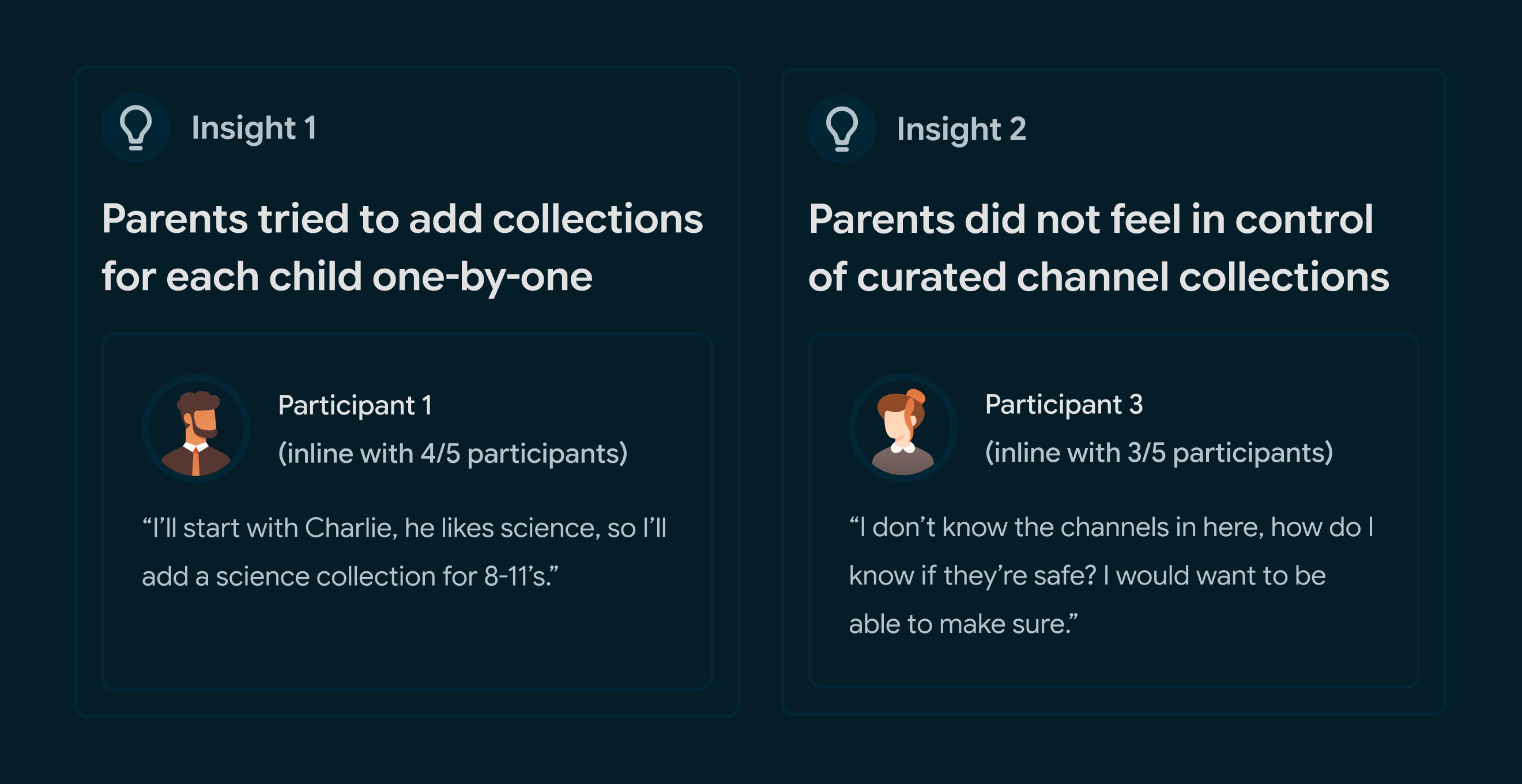 Our user research team conducted exploratory user research with 22 parents in the US and UK to understand the problem space. This research, alongside background research into the area resulted in the findings below.