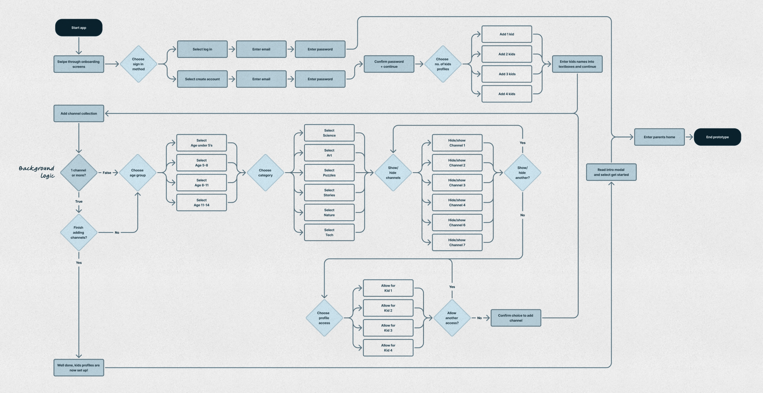 Integrating the adjustments, I then mapped out how the product would connect in flows from a broader perspective and how the different parts would fit together.