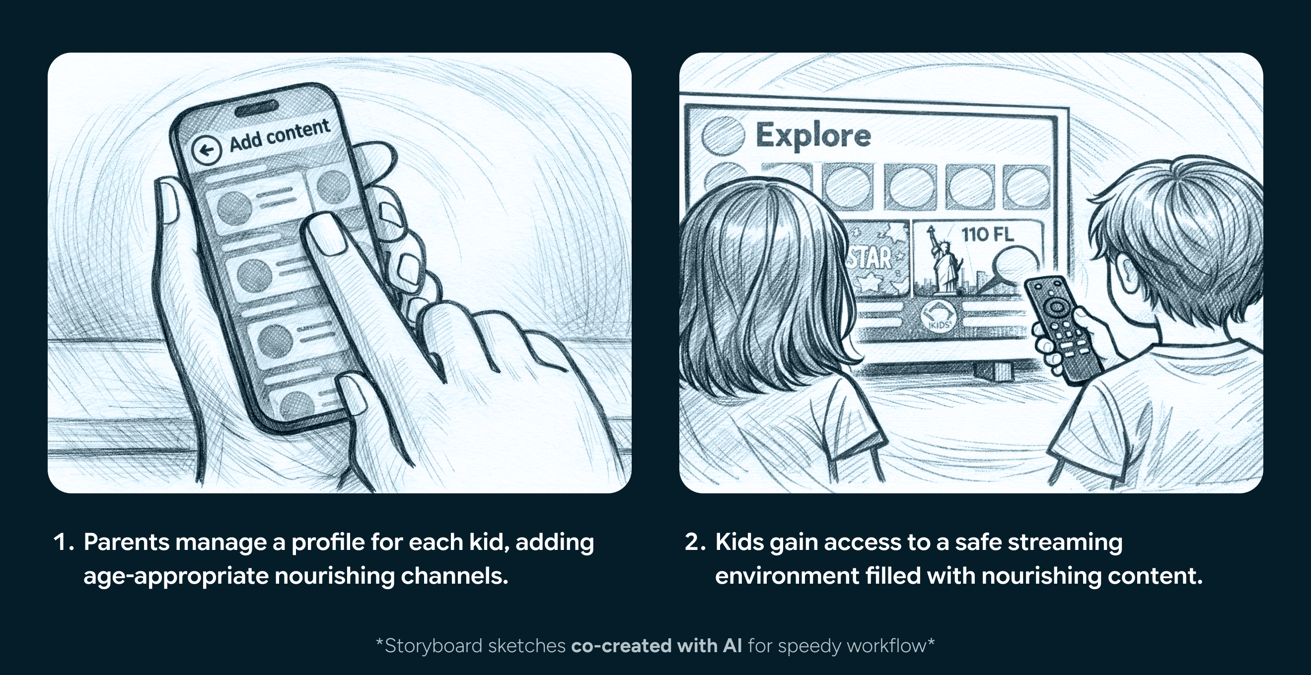 I suggested the introduction of a “Pacifier Mode” in the parent app, which would allow parents to hand their phone to their child in the car or on the go with access to all the content from the kids Smart TV app.